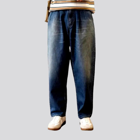 Whiskered medium wash baggy men's jeans