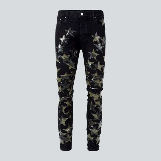 Black series stars embroidery jeans