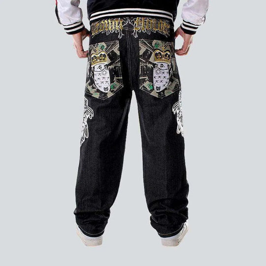 Hip-hop crown embroidery jeans