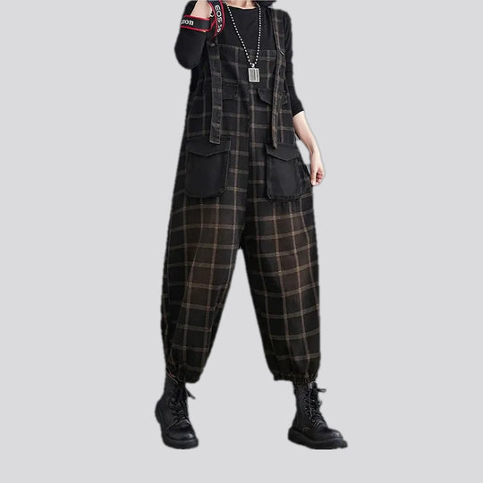 Chic boho checkered fit denim bib for women